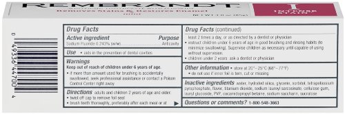 - Feature : One 3-ounce tube of powerful, stain-removing toothpaste / Removes deep stains caused by coffee, tea, red wine or smoking; prevents plaque build-up, tartar and gumline erosion / Packed with extra strength whitening citroxain / Contains alumisil, a new stain fighting ingredient with more cleaning power; fresh mint flavor / Over 5, dentists dispense Rembrandt's clinically proven teeth-whitening products