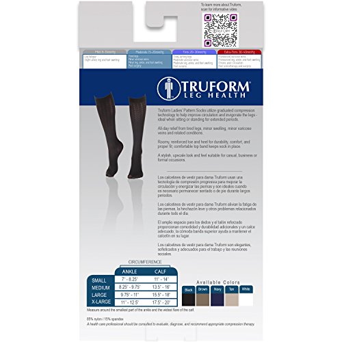 Studio : Surgical Appliance Industries Publisher : Surgical Appliance Industries Binding : Health and Beauty Product Description Truform women's trouser socks are designed to help invigorate the legs and reduce leg discomfort. Attractive designer-knit cable pattern makes this sock an excellent choice for business, or business-casual wear. Truform stockings, socks and pantyhose feature Graduated Compression Technology, which delivers a compressive action to the leg that is greatest at the ankle, then gradually decreases toward the heart. The amount of compression is expressed as mmHg (millimeters of mercury). Graduated compression provides two primary benefits to the legs. Firstly, increased pressure on tissues beneath the skin helps reduce leakage of fluid from the capillaries and helps increase the return of fluid to the capillaries and lymph vessels, reducing and preventing swelling for the wearer. In addition, compression stockings help control the size (diameter) of the superficial veins that lie just beneath the skin, preventing the slowing of blood flow and blood "pooling" so it can flow more quickly up the leg back toward the heart. Truform graduated compression support hosiery works in concert with your body to help maintain good circulation and leg health. Truform combines the best materials, the latest methods of semi-automated manufacturing, and "old-worlde" hand craftsmanship to produce a high-quality product at affordable prices. Multiple quality assurance checks are performed throughout our entire manufacturing process to insure comfort, fit, durability, and an accurate, therapeutic, graduated compression profile. We take the extra time and effort necessary to insure a therapeutically effective, comfortable fit. The combination of state-of-the-art materials and equipment, plus knitting "know-how" sets Truform apart from the crowd to make your legs look and feel great! 0