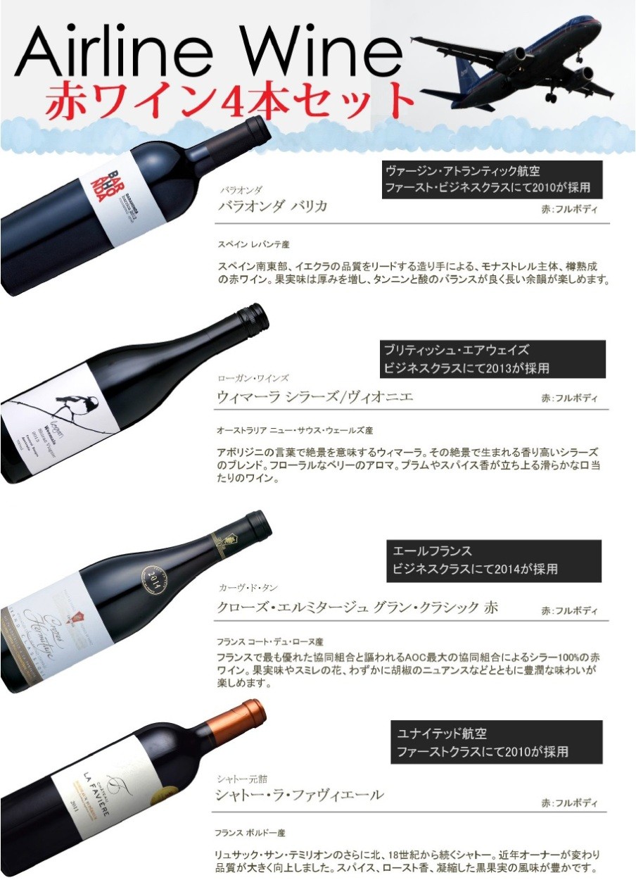 ビジネスクラス以上で採用され、世界のセレブ達が雲の上で楽しんだワインを気軽にお家で楽しみませんか?