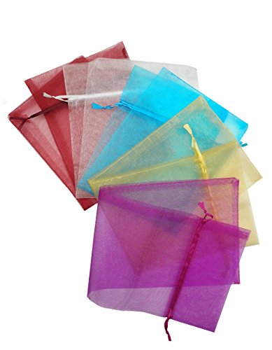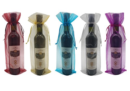 Ankirol 20pcs Sheer Organza Wine Bags 5.5x14.5 inch Reusable Simple Bottle Wrap Dresses Festive Packaging Baby Shower Wedding Favors Samples Display Drawstring Pouches (multi)
