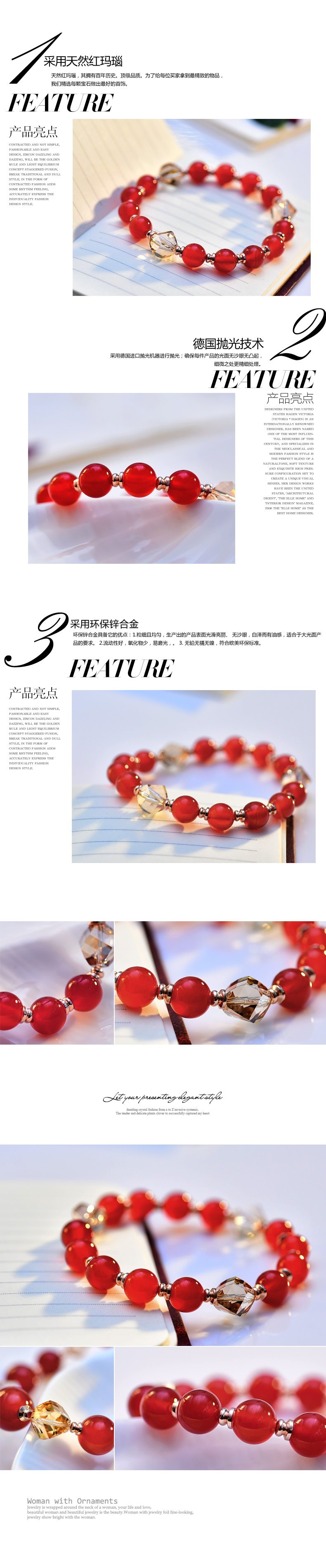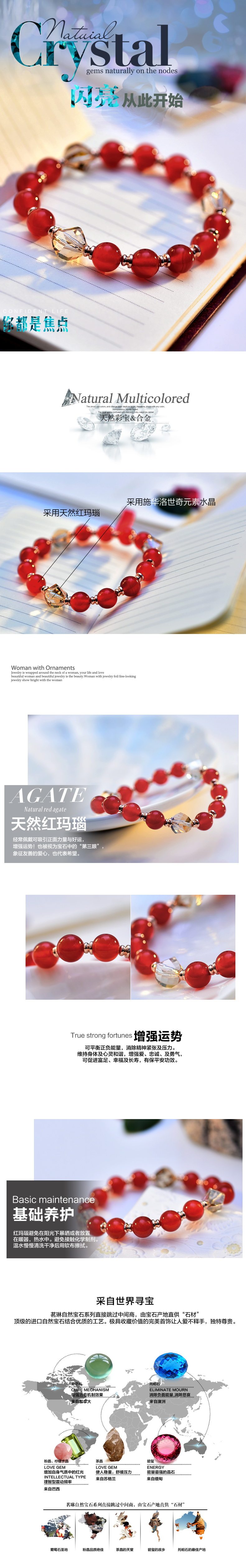 天然红玛瑙施华洛世奇水晶满堂红手链女韩国版 礼物