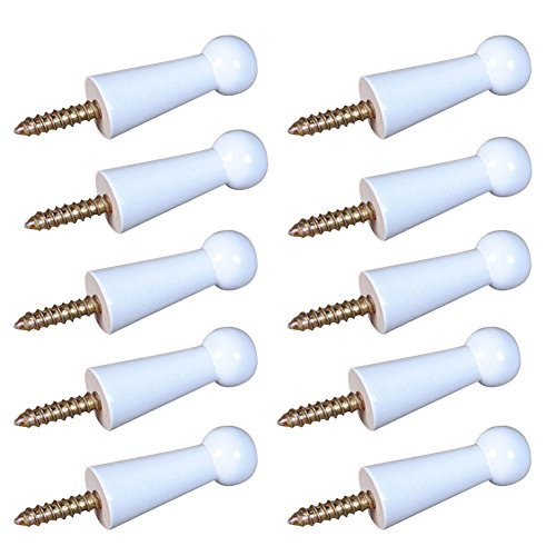 Mike Home Screw-On Solid Wood Hook Coat Hook Towel Hook Shaker Pegs for Bathroom Livingroom Garden 10 Pieces (White Paint)