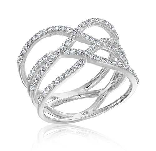 -. Feature : Crafted in .925 Sterling Silver / Rhodium plated for tarnish guard / Crossover Double "X" Ring / Shimmering Cubic Zirconia / Shipped in an elegant gift box