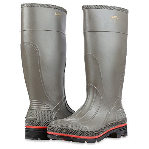 Studio : Sperian Protection Group Publisher : Sperian Protection Group Binding : Tools Home Improvement Product Description These Servus pro safety hi boot are expertly engineered for durability and comfort, Servus PRO is specially formulated to withstand deterioration. Developed with TDT, Servus PRO (Processing) footwear withstands the organic chemical deterioration common in meat processing and petrochemical industries. Seamless, waterproof comfort with 3-stage molded construction. Outsole compounds formulated for long wear and slip resistance. Removable and washable ergonomic insoles. Extended ribbed steel shank for support. Yellow midsole trimline indicates steel toe. Graduated heights decrease calf chaffing. Available in gray, red and black color. Comes in size-9. 0