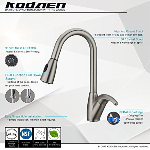 Kitchen Sink Faucet Brass Single Handle Lever One Hole Spray Pull Down Vessel Mixer Taps Brushed Nickel