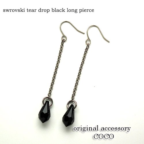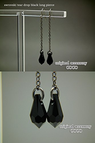 원본상품명: スワロフスキ? ティア ドロップ ブラック ロング ピアス ? レディ?ス しずく フック スワロ チェ?ン シンプル ぶらさがり チタン 手作り 日本製 金? アレルギ? swarovski