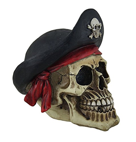 Studio : Everspring Imports Publisher : Everspring Imports Binding : Kitchen Product Description Pirate Captain Bandana Human Skull Polyresin Figurine Detailed Carved Captain Hat Human Skulls Wearing Bandana Use at home office gift or Bikers collectors Halloween Home Decor Bone Color Measures : 6.5 Inches Tall Hand painted detailed product A Great Gift For Skull Lovers 0