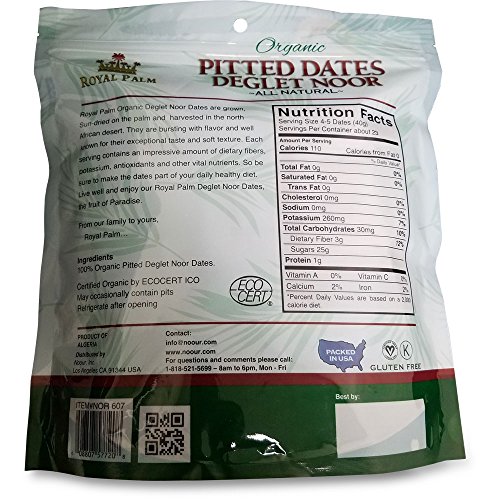 INGREDIENTS: Pitted Deglet Noor Dates. May occasionally contain pits. Refrigerate after opening-