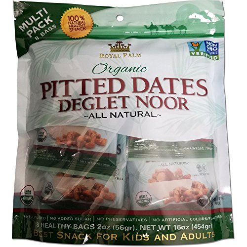 Royal Palm Organic Deglet Noor Dates Pitted (2 oz / 8-Pack), All Natural, Certified Vegan, Gluten Free, NON-GMO Verified, Kosher