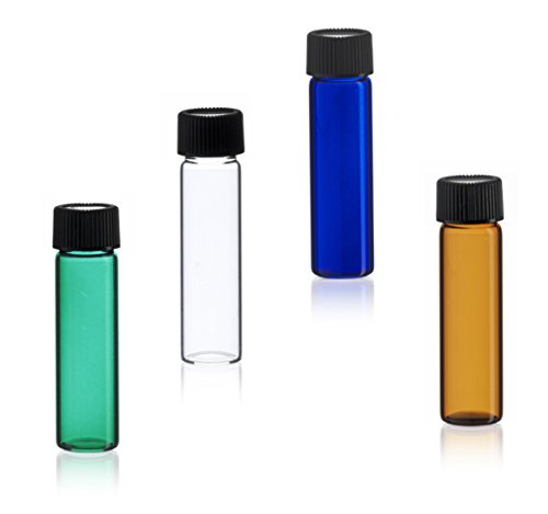 MagnaKoys 1 Dram & 2 Dram Variety Pack of Glass Vials w/ Black Caps for Essential Oils & Liquids (4 Pack)
