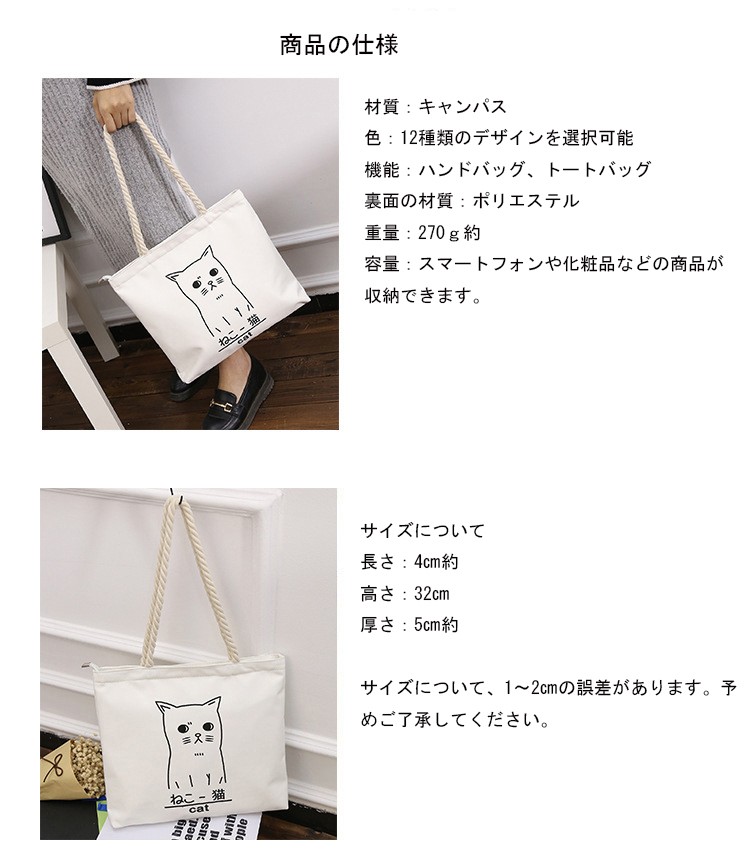 商品説明:◆伸縮性:有り◆厚さ:普通◆素材:キャンパス、ポリエステル◆バッグのサイズ:長さ:32cm約 高さ:34cm約 厚さ:5cm約◆色:写真通り◆機能:トートバッグ、ハンドバッグ、ショルダーバッグ◆重量:300g約◆商品内容:1xバッグ特徴:【軽量、携帯便利】バッグが、軽量で、携帯便利です。出掛けに最適!!大きいサイズのトートバッグです。たくさんの商品が収納できます。旅行や出かけに最適です。普段のお出掛けで入りきらない物を持ち運ぶサブバックとして日々の日常生活で重宝するアイテムです。【ファッションなデザイン】欧米風なファッションのバッグなので、通勤や通学にも適用します!!【収納力あり】内側にポケットがあるので、機能的で収納力も抜群です。素材?作りもしっかりしているので、お出掛けはもちろん、通勤?通学、お買い物、マザーズバック、サブバッグとしても幅広くご利用頂けます。