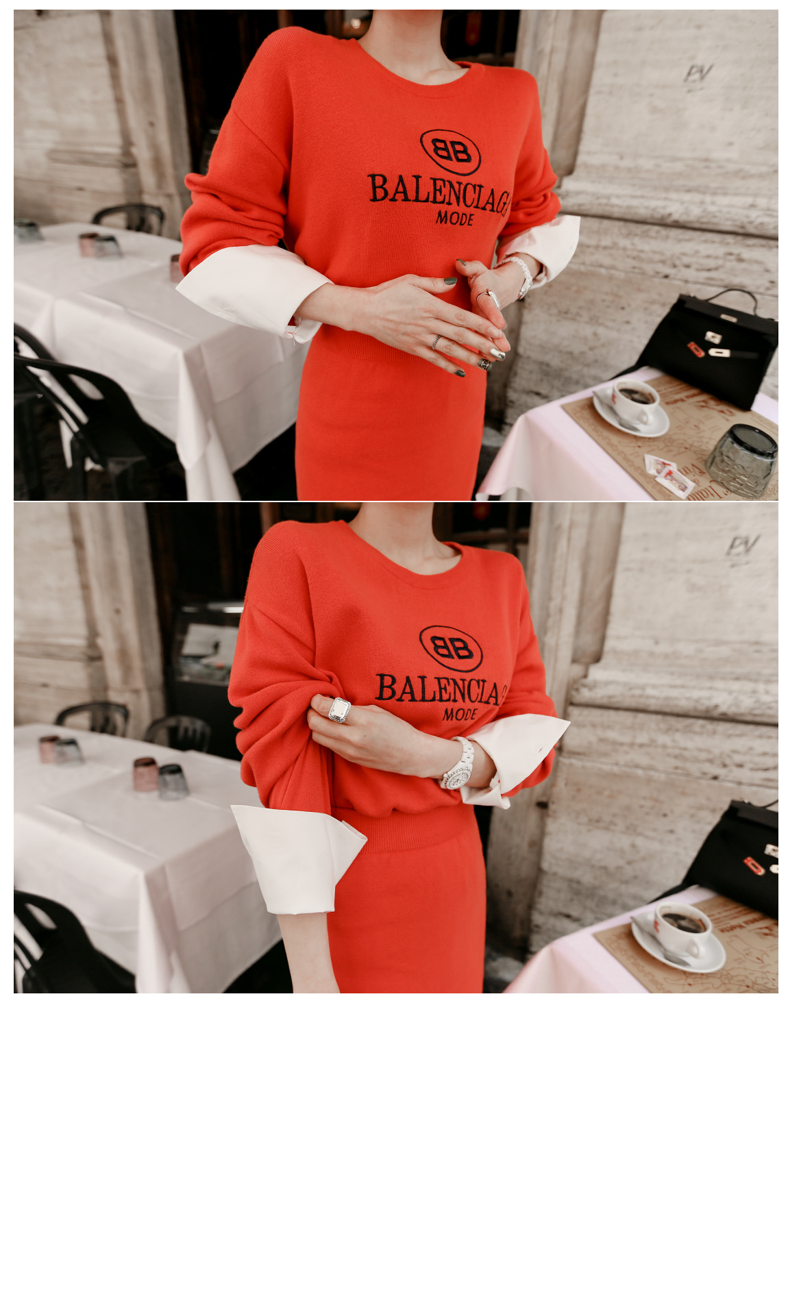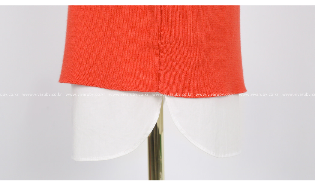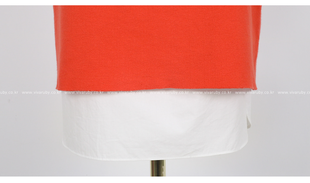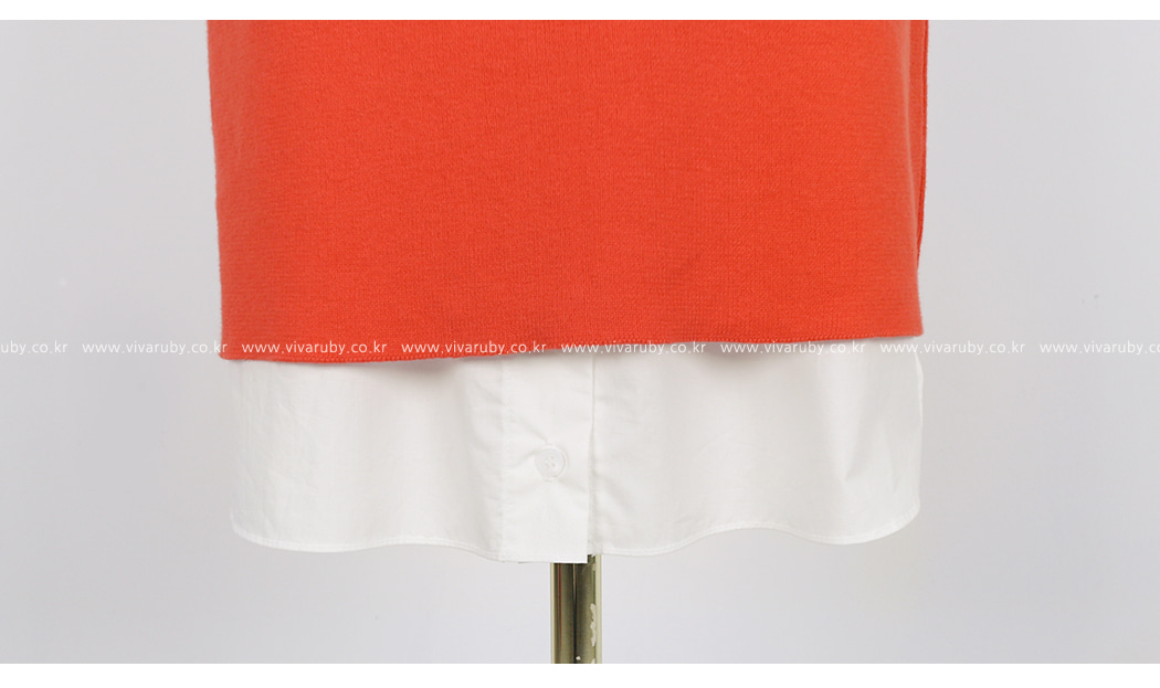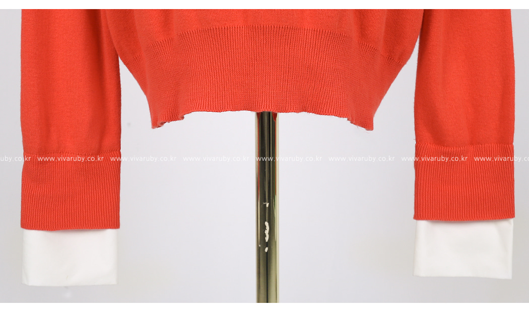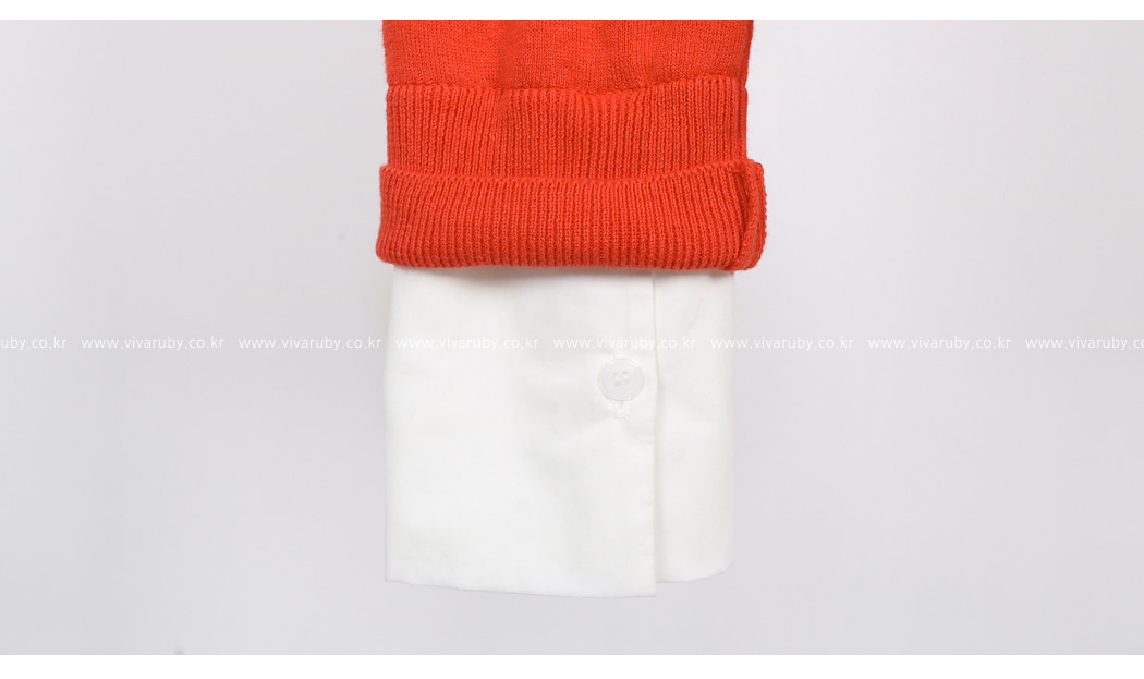 袖とすそのフェイクシャツとのレイヤーの1つのようなルックを演出したそうです