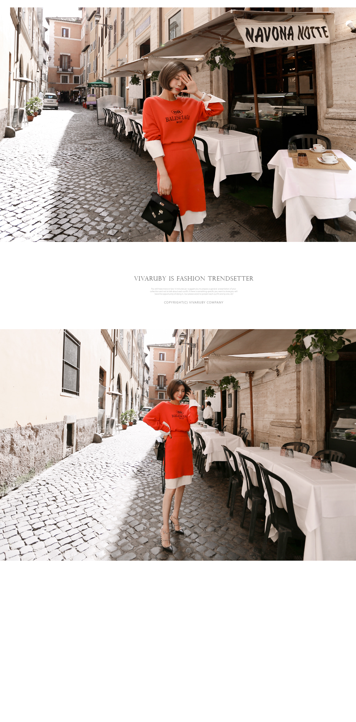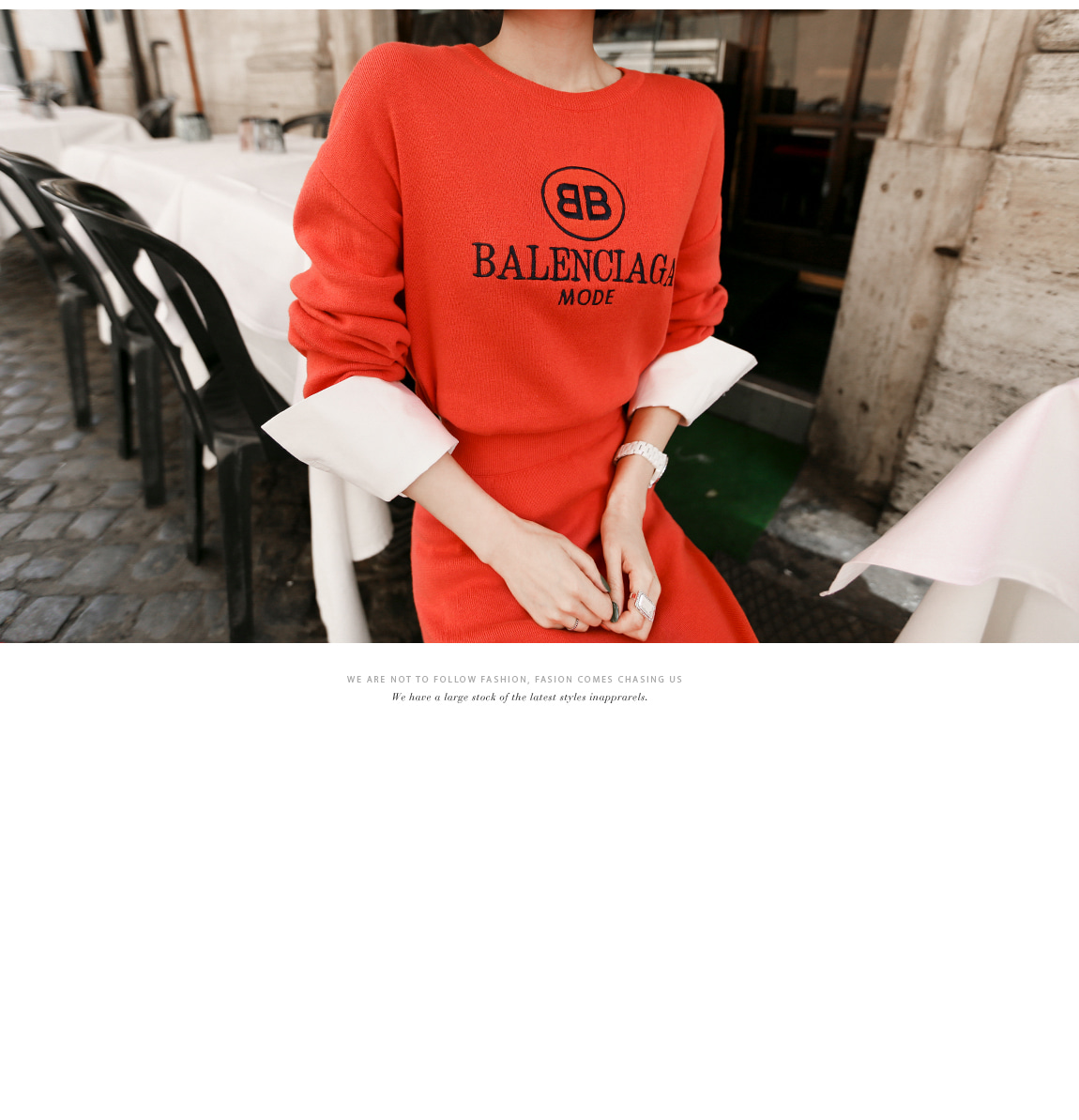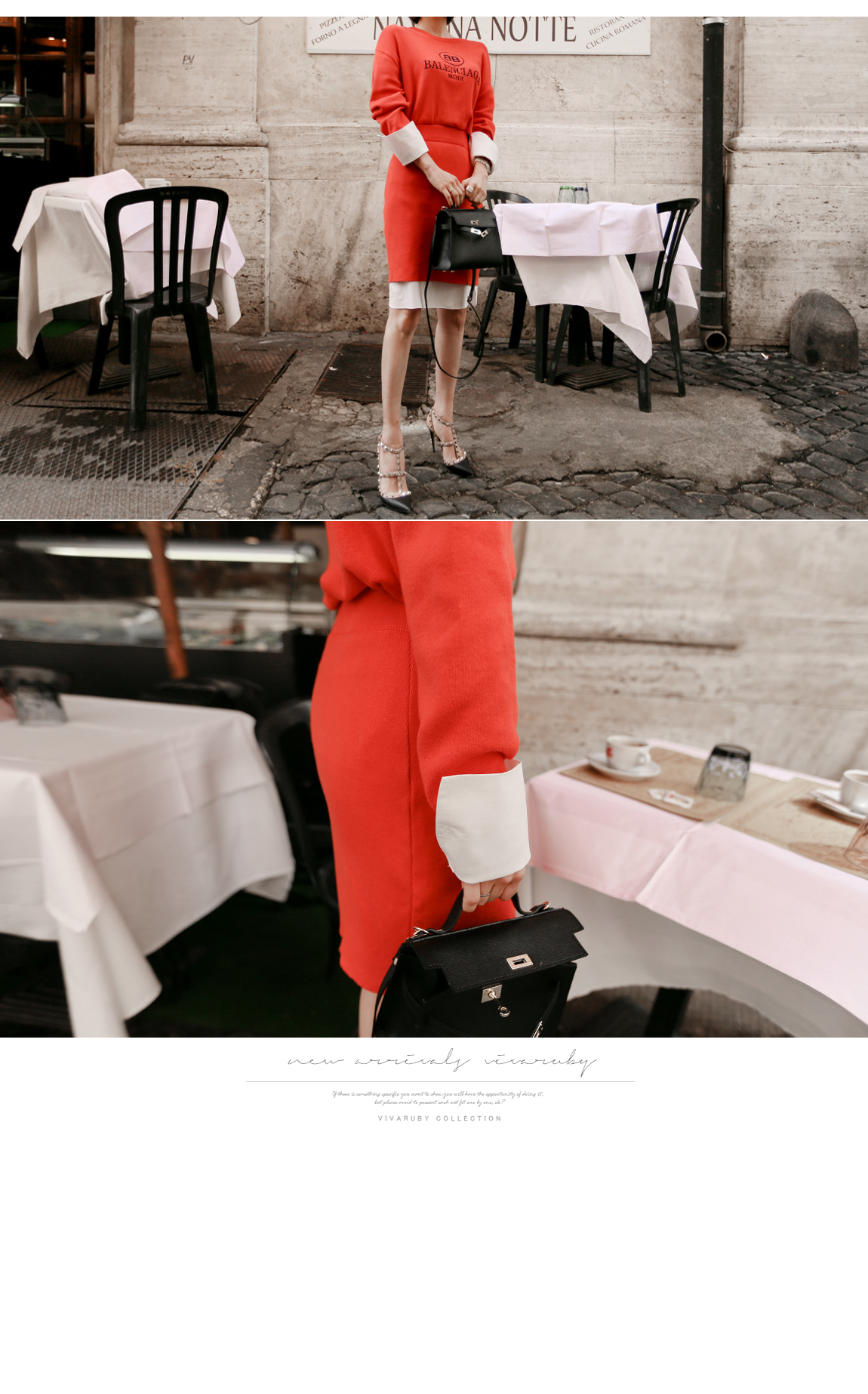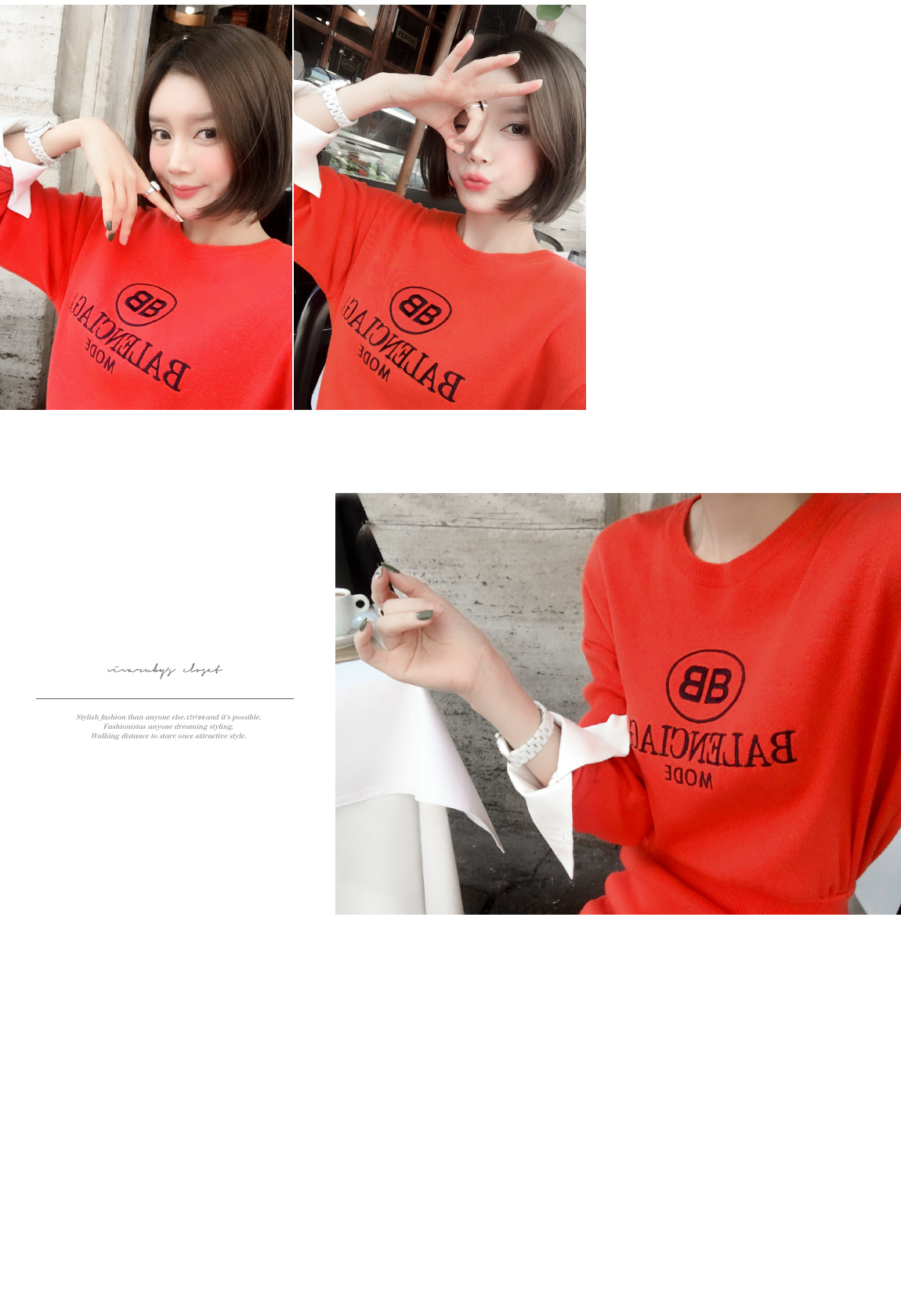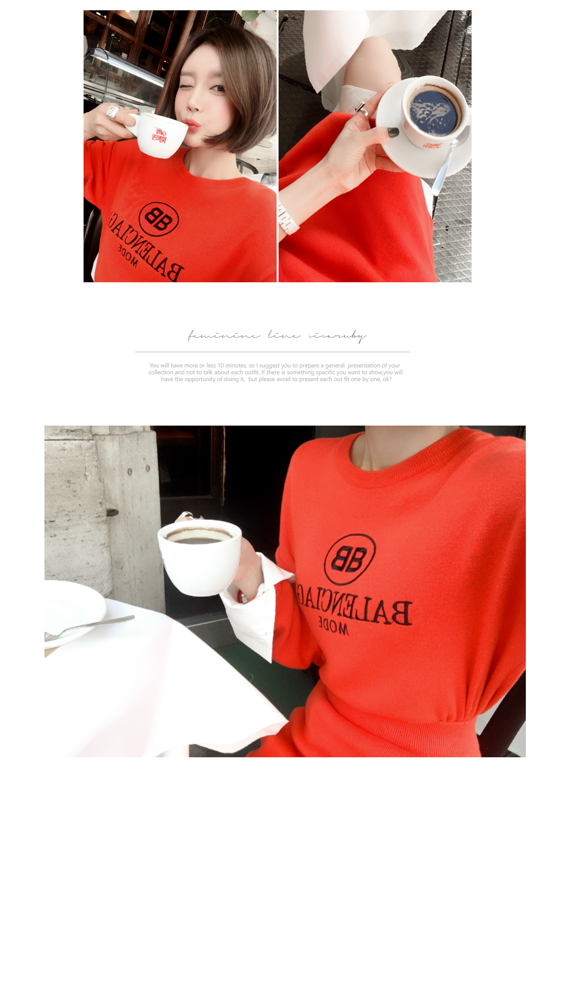 袖とすそのフェイクシャツとのレイヤーの1つのようなルックを演出したそうです