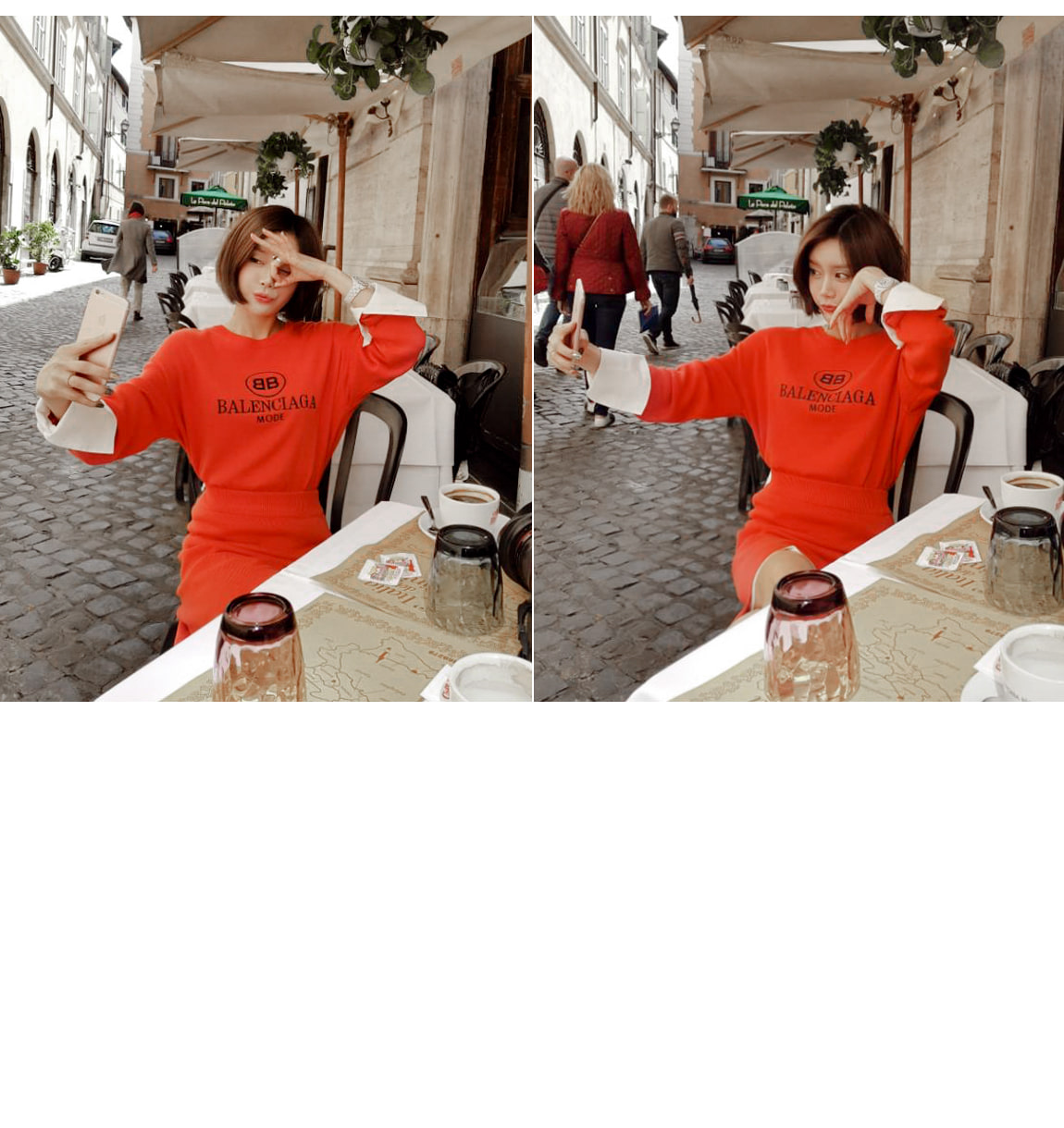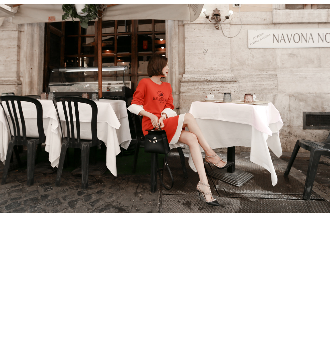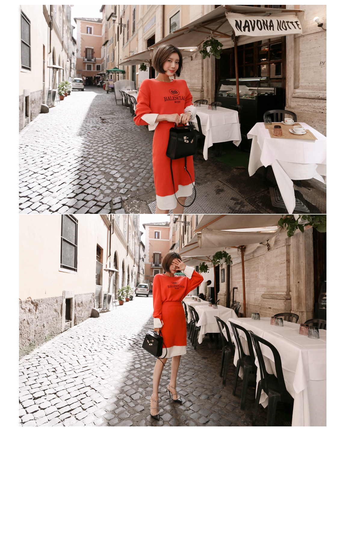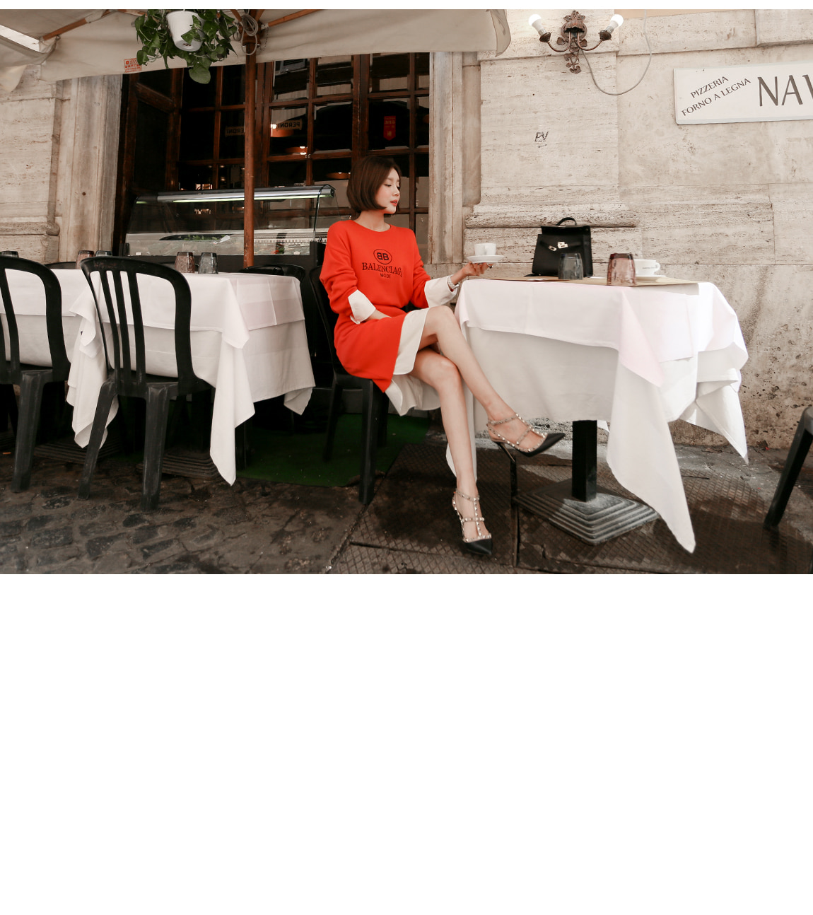 袖とすそのフェイクシャツとのレイヤーの1つのようなルックを演出したそうです