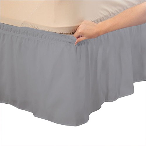 BRIGHTLINEN Wrap Around BedSkirt 15 Inches Drop (with elastic all around) Silver Grey Solid , Queen
