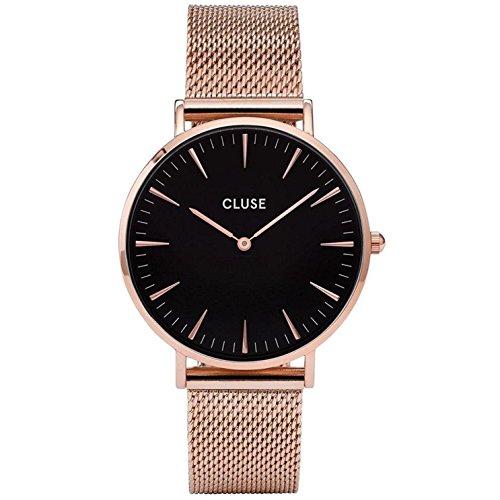 Cluse Women's La Boheme 38mm Rose Gold-Tone Steel Bracelet Metal Case Quartz Black Dial Watch CL18113