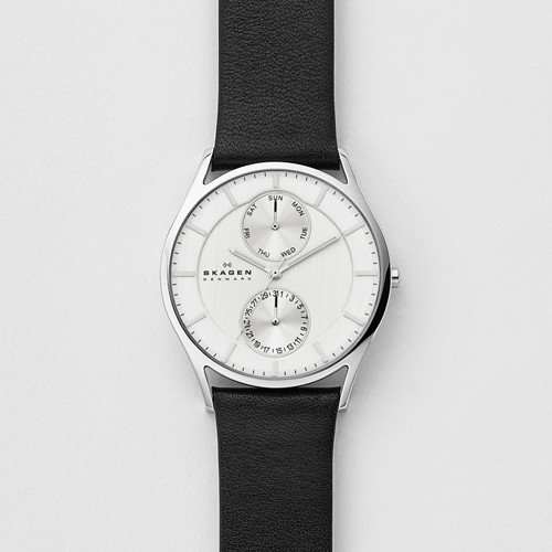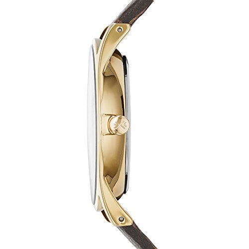 Add a refined touch to your look with the Skagen Men's Goldtone Watch with Brown Leather Strap. This 40 mm men's watch features the timeless elements of a goldtone case and leather strap. The dial features goldtone indexes at the hours, and smaller indexes to mark the seconds. Dials on the face let you set the date and the day of the week.Feature