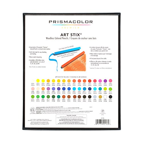 Prismacolor 2165 Premier Art Stix Woodless Colored Pencils, 48-Count