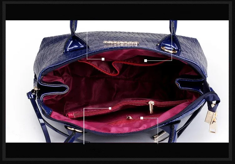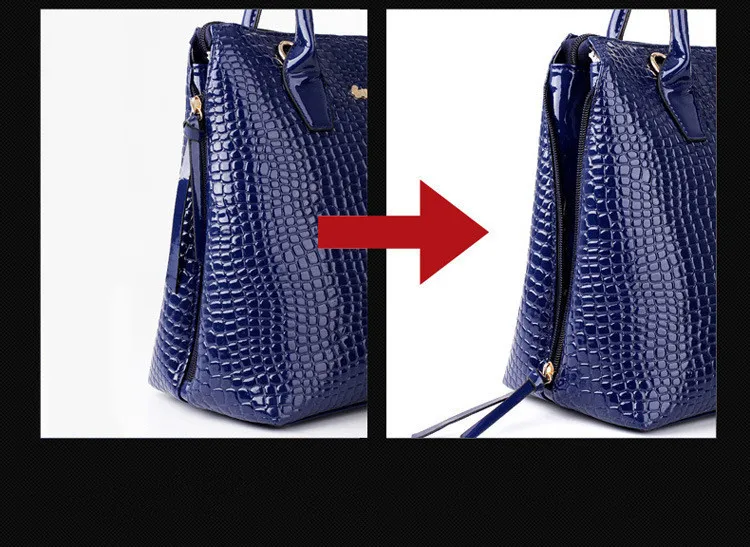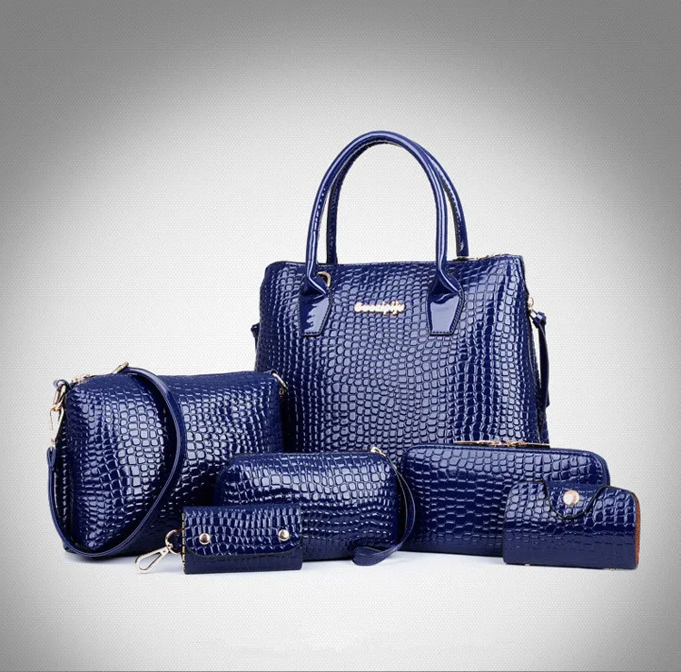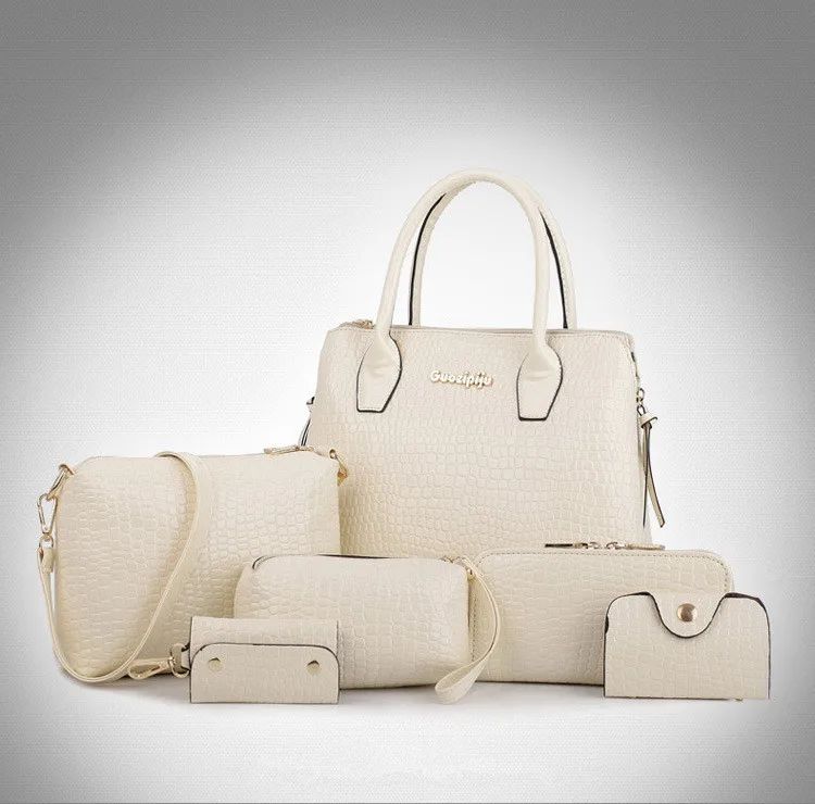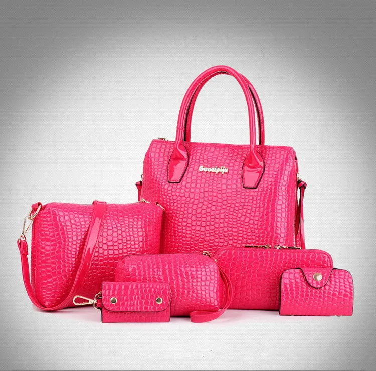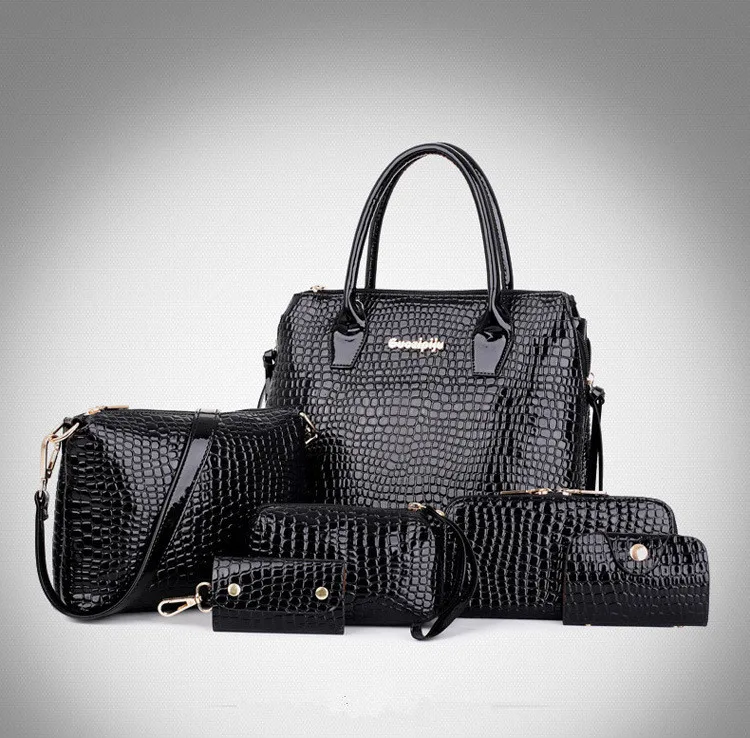 6 PCS/Set Women Bag Crocodile Pattern Composite Bag Stone Women Messenger Bags Shoulder Handbag Purse Wallet PU Leather Handbags