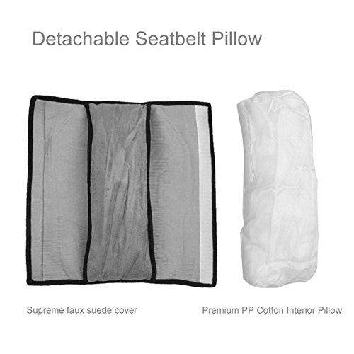 The removable seatbelt pad is easy to remove and can be cleaned. The shoulder pad is filled with PP cotton and covered with a soft micro-suede fabric.