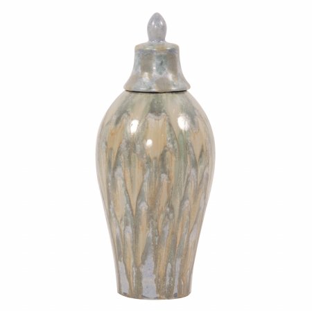 Howard Elliott Celadon Dripped Ceramic Urn with Lid, Large, 2 Piece