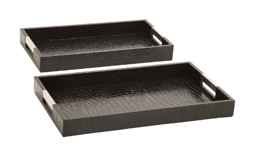 Plutus Brands Beautiful Wood Leatherette Tray, 20-Inch, Set of 2