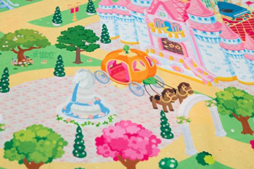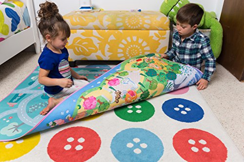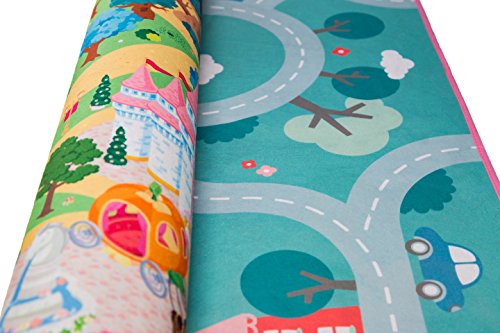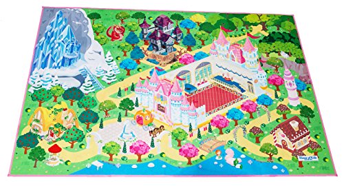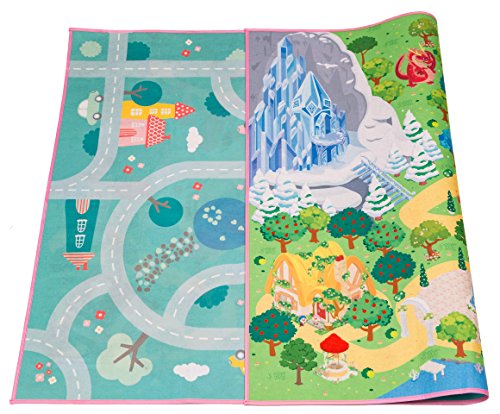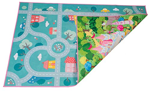 Studio : MMP Living Publisher : MMP Living Product Description Double the scenery, double the play value! Double sided felt play mat with both princess and town designs in one convenient plat mat! Ideal for imaginative doll play. Can be used with many types and brands of dolls, animals and more! Princess side features a luxurious castle with throne room, enchanted forest, tower, ice castle, gingerbread cottage, thatched cottage and pond. The reverse side features a colorful neighborhood scene. Large 3' x 4' surface size accommodates multiple children and is perfect for group play (58.5" x 39.5" to be exact). Can be folded for easy travel and storage. Felt play surface is trimmed with a fabric border. Machine washable in cold water, lay flat or hang to dry. 100% Polyester. Designed in Belgium. Ages 18mos 0