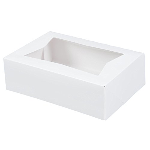 8" Length x 5 3/4" Width x 2 1/2" Height White Kraft Paperboard Auto-Popup Window Pastry / Bakery Box by MT Products (Pack of 15)
