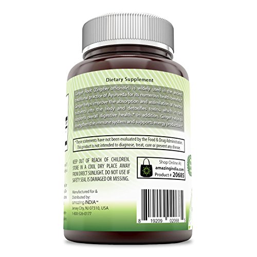 -. Title : Amazing India?Organic Ginger - Veg. Capsules?– All-Natural Digestive Aid, Helps with Nausea and upset stomach, Promotes heart and Immune health*