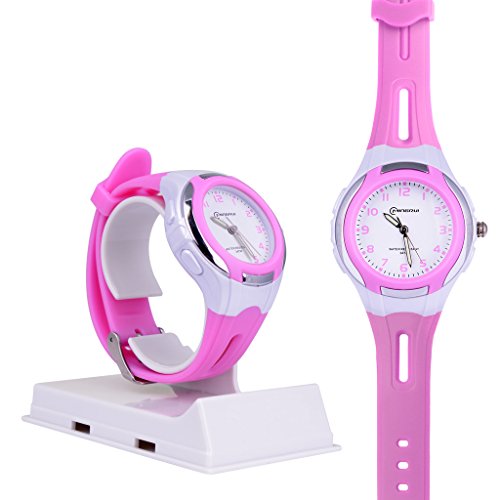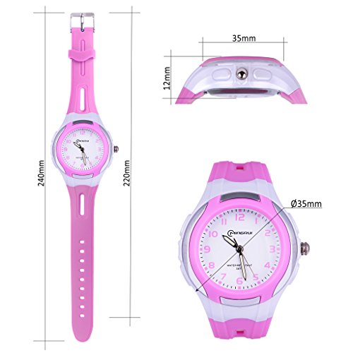 WOLFTEETH Analog Quartz Girls Watch White Dial Kids Wrist Watch Waterproof Designer Learning Time Watch, Plastic Band Purple 304402