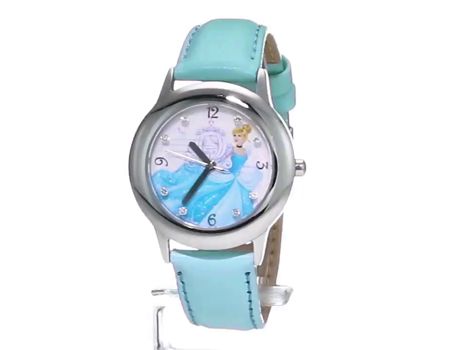 Disney Girl's 'Cinderella' Quartz Stainless Steel and Leather Watch, Color:Blue (Model: W002937)