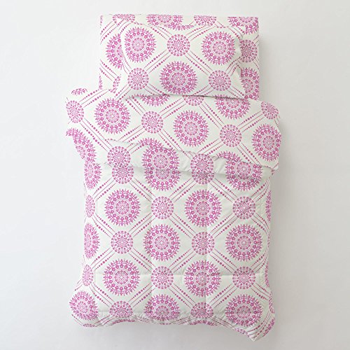 Studio : Carousel Designs Publisher : Carousel Designs Binding : Baby Product Product Description Toddler pillow case in Hot Pink Modern Medallion, with pillow. Our toddler pillowcases are designed to be a perfect fit for our toddler pillows, and are guaranteed to be a comfy fit for your toddler! Measures 14" x 21". Pillow included, measures 14" x 20". Our toddler pillows are made with recyclable hypoallergenic polyester fiberfill. 0