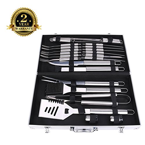BBQ Tool Set, 24-Piece Stainless Steel Barbecue Grill Set, Sturdy Grill Tool Set in Portable Aluminum Carrying Case(24-Piece)