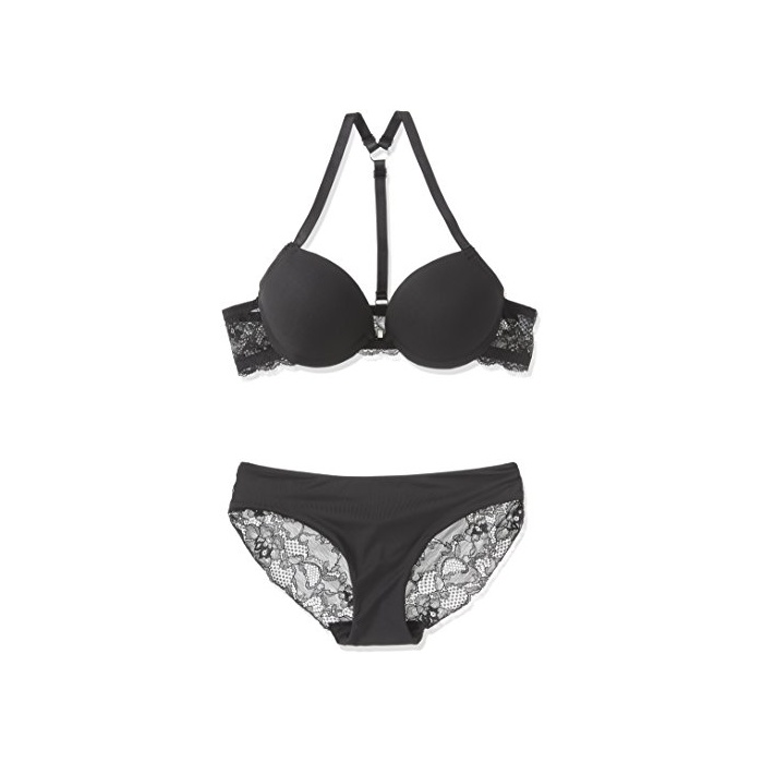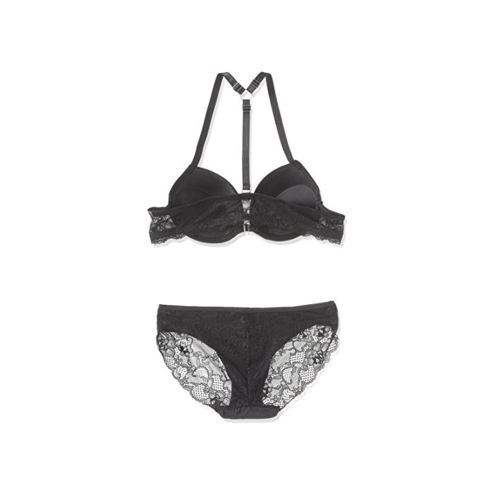 원본상품명: (R-Dream) フロントホック ブラ ブラジャ ショツ セット 美乳 レサバック シムレスカップ 女性用 下着 ランジェリ バックスタイルをセクシに魅せる (ブラック 75B)