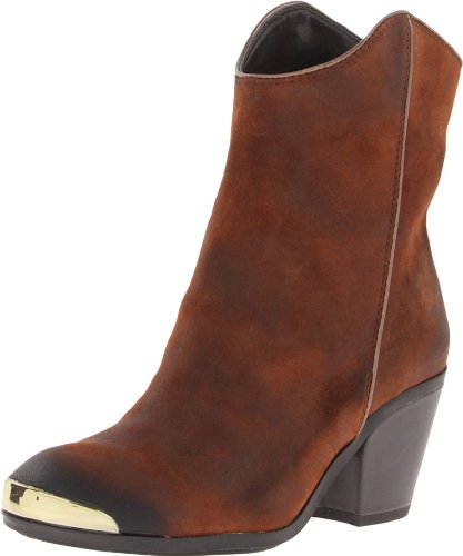 Suede and synthetic upper with oiled toe, exposed seams and metallic accent at toe. Man-made lining. Lightly cushioned man-made footbed. Stacked heel. Man-made sole. Imported.