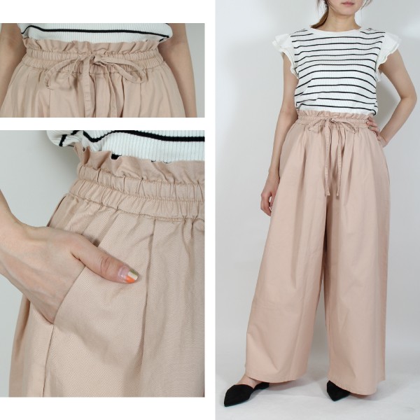 ボトム丈:96cm、ウエスト:68cm(ゴム)、ヒップ:103+cm、前ワタリ:33.5+cm、後ワタリ:40+cm、前股上:35cm、後股上:36cm、裾周り:75cm、股ぐり:82cm |