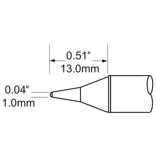 Metcal SFV-CNL10 Series SxV Hand Soldering Tip for Most Standard Application, 421°C Maximum Tip Temperature, Conical Long Reach, 1mm Tip Size, 13mm Tip Length