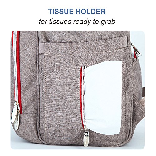 ULTRA FUNCTIONAL: A smart 17 pockets baby bag, equipped with integrated stroller straps, a back zippered pocket to store you phone, a side tissue holder, elasticized interior pouches and a free changing pad