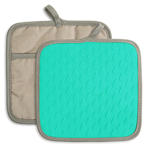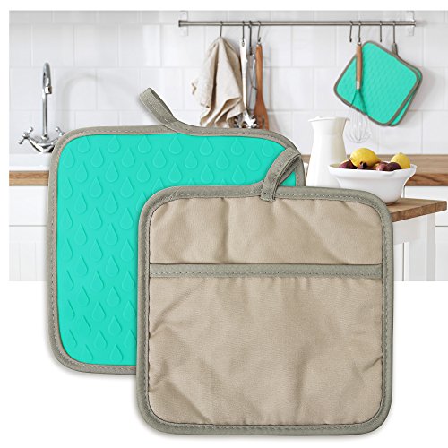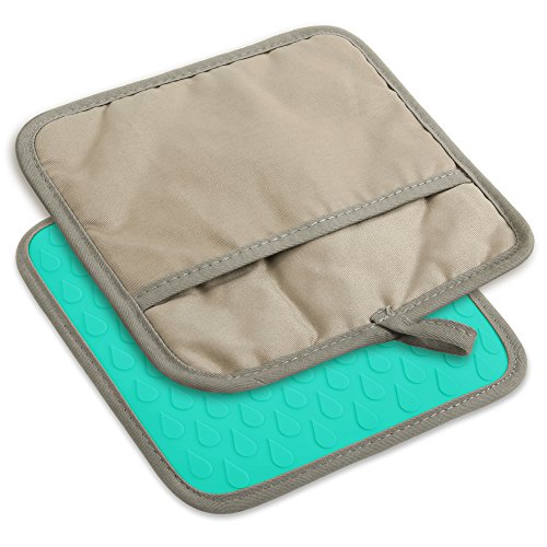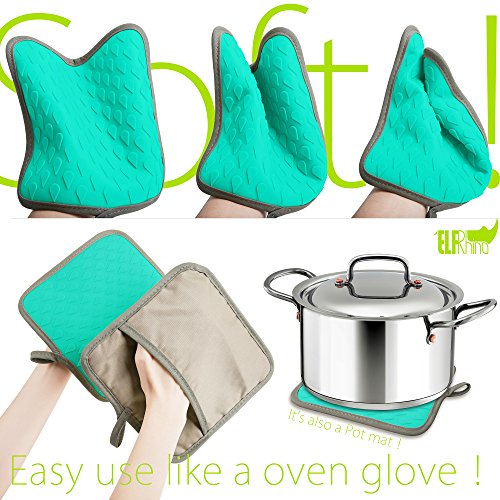 ELFRhino Silicone Heat Resistant Versatile Pot Holder Hot Mats Pads Oven Gloves Mitts Waterproof Non-slip Kitchen Mats for Cooking Potholders Grilling Baking Set of 2 Tiffany