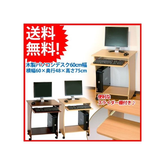 원본상품명: オ?ルウッド コンパクト机 ダ?クブラウン木目 60cm幅 パソコンデスク スライダ?/キャスタ?付き PW-6000-DBR