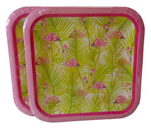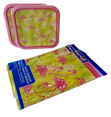 -. Feature : Party Pack Summer Pink Flamingo Square Party Paper Plates (28) & Plastic Tablecovers (2) / Square Paper Plates: (2) Packs of (14) Plates each. 9"X9". Total (28) Plates / Plastic Tablecover: (2) Tablecovers. 54" X 108"