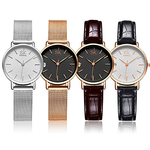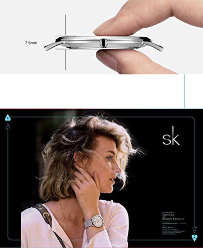 -. Feature : 1.Elegant Women Wristwatch Design: Unique simple white fiber dial with obvious golden needle indexes and hands pointer, classic gold painted ultra slim light case, matched with high quality steel mesh strap, get you more fashion and comfortable wearing experience. / 2.Selected Watch Material: Fadeless golden steel case and mesh bracelet band, clear Hardlex crystal window and superior fiber dial, Japanese quartz movement, provides precise and accurate time keeping. Rectangle hard paper gift box, it will be the perfectest gift for yourself or friends. / 3.Standard Women Wrist Size:Dial Diameter: 30 mm, Case Thickness: 7.5 mm, Band Width: 14 mm, Band Length: 19 cm, Water Resistance Depth: 3Bar. Fashion mesh band could move to adjust the size, you could always control your style and time. / 4.Instruction For use and Maintenance: Bubble and gift box spongia package keeps watch well in transition. Alternate bands like leather or steel mesh belt for alternative use will be highly recommended, follow your mind and style. Avoid swimming and surfing for long. / 5. What's Included:1* SK women watch, 1* gift box, 1* instruction book. 30 days free return,30 days replacement, 365 days warranty period. Any question please feel free to contact seller service first. More color and size are available from SK brand watches.