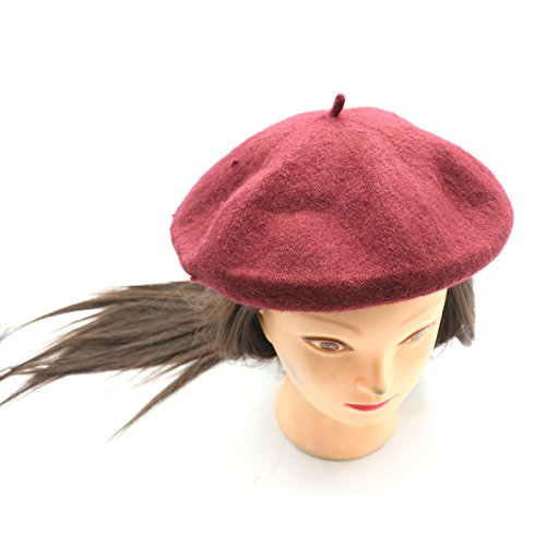 MAISHO Wool Red Beret Hat Classic French Artist Beret Hat (Dark Red)