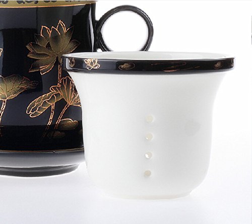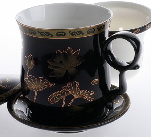 -. Title : Moyishi Chinese Teaware Black Porcelain Bone Tea Cups Tea Mug (With Lid) Lotus