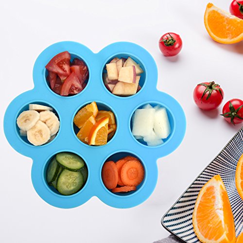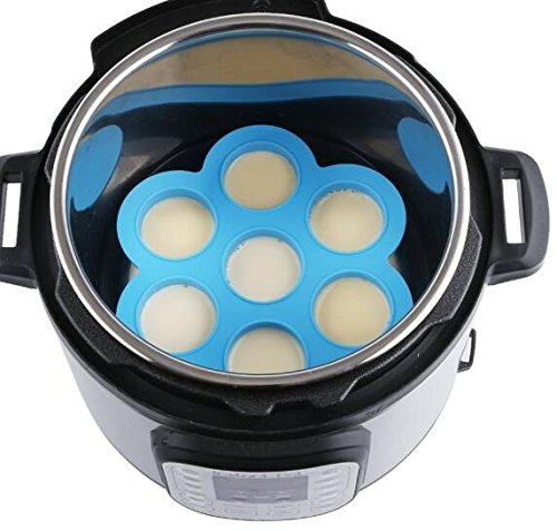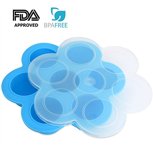 Features Material: Egg Bite Mold made of food-grade silicone, comes with a lid which made of polypropylene plastic Security and Convenience: Passing thousands of lab tests, silicone egg mold could be used in instant pot, microwave and oven and freezer. You can use this silicone egg bite molds for Egg Bites, Egg Muffins, Yoghurt, Ice Cream High Confinement: Plastic lid can isolate the bacteria in the air and seal tightly to protect fresh original taste of food. 7 individual portions: You can put different taste of your food and enjoy more choices Freezing food: You can store them in their portions in the fridge until ready to eat. Reheat gently! Size:8.3" *1.96"(H),Diameter 8.3", single hole diameter 1.96in. Capacity: Each cube is approximately 2.3 ounces.