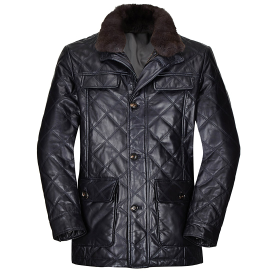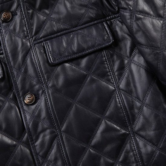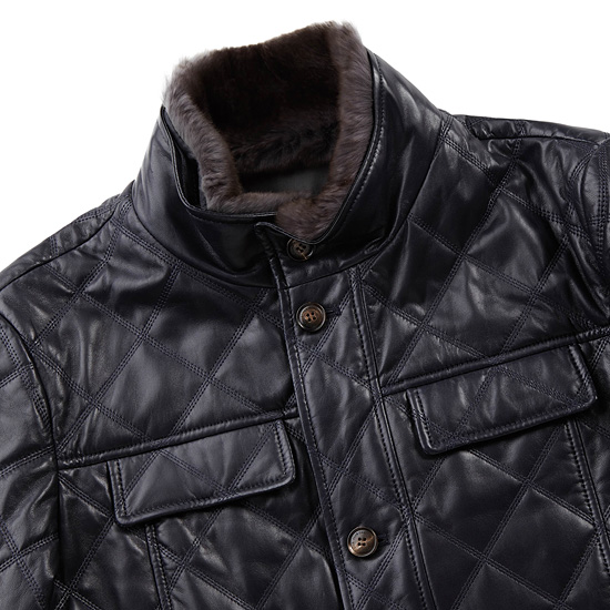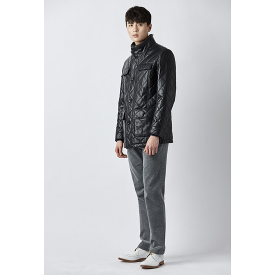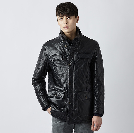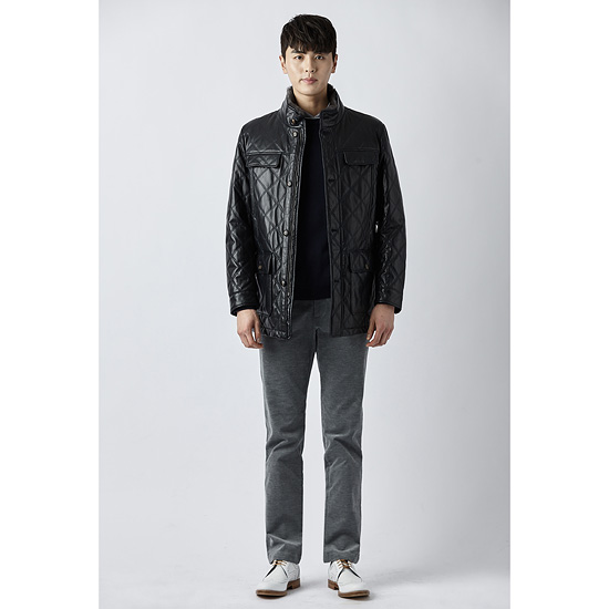 - 유연한 터치감의 천연 양가죽 소재를 사용하여 고급스러운 남성 점퍼.