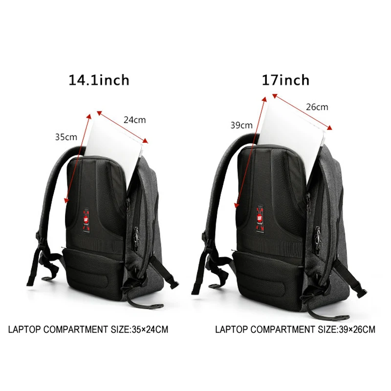 Laptop compartment size:14inch:W24*L35cm 17inch:W26*L39 cm
