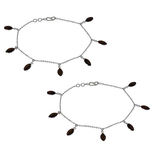 -. Title : Indian Jewellery Tigers Eye Bracelet Ankle Chain Foot Anklet Silver Pair - Birthday Gifts
