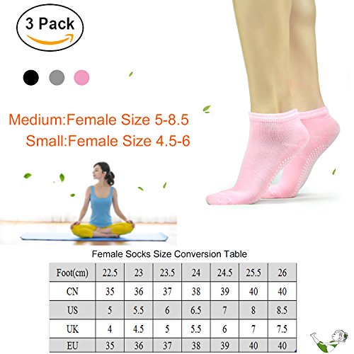 -. Feature : ANTI-SLIP SILICONE SPOTS: The unique anti-slip glue design is small foot of the socks,which can protect you from slipping and tumbling / ECO-FRIENDLY BREATHABLE SOFT COTTON MATERAIAL: Super sweat-absorbent natural cotton keeps your feet dry and healthy. The strong elastane ensure that it fits every foot size and gives you ultimate comfortable shape like a second skin. / UNISEX SOCKS WITH FREE SIZE: One size fits most (Women's Size 5-8.5).Hand wash in cold water recommended. Dry flat,do not iron. / HYGIENIC: Barrier between foot and equipment protects feet from unwanted dirt and germs. / ALL PURPOSES IN ONE: Ideal for not only yoga, but also pilates, barre, bikram,ballet dance,gym and other sports.Perfect for home, travel, studio and hospital use as well.