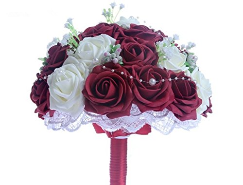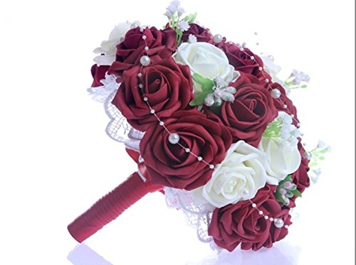 - Title : Coeus 30pcs of Rose Wine Red& Ivory Roses Korean Style Bouquet-bridal Wedding Bouquest( Buy 7 Get 1 Free)